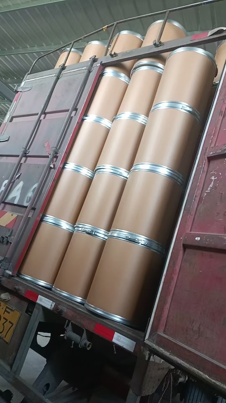 鐵箍紙板桶發(fā)貨現場,新鄉(xiāng)市博輝包裝專注生產鐵箍紙板桶