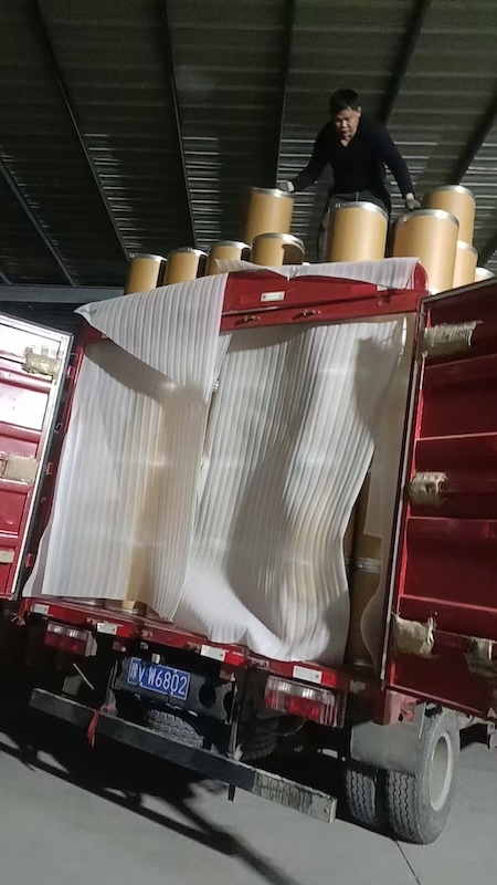 鐵箍紙板桶發(fā)貨現場,新鄉(xiāng)市博輝包裝專注生產鐵箍紙板桶